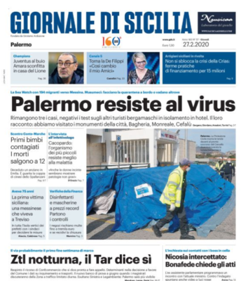 La prima pagina dell'edizione odierna del "Giornale di Sicilia" dedica ampio spazio al Coronavirus, come visibile in foto.