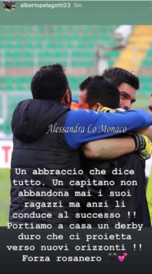 Attraverso una foto pubblicata sul proprio profilo "Instagram", Alberto Pelagotti, portiere del Palermo, ha esultato per la bella vittoria ottenuta...