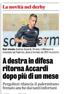 Gazzetta dello Sport: “Palermo-Fc Messina, le probabili formazioni”