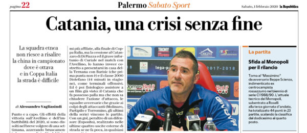 L'edizione odierna di "Repubblica" parla della situazione in casa Catania. Gli effetti della vittoria sull’Avellino e dell’imbattibilità del 2020, si...