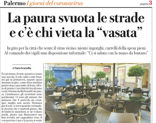 L'edizione odierna de "La Repubblica" si sofferma sull'arrivo del Coronavirus a Palermo. La città è diventata subito deserta: la paura...