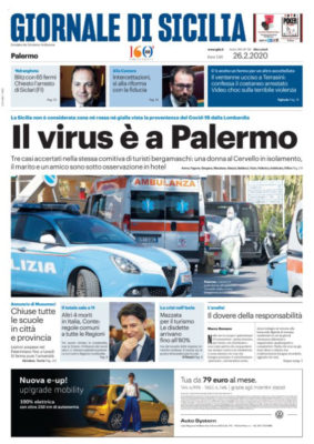 L'edizione odierna del "Giornale di Sicilia" si sofferma sull'arrivo del Coronavirus a Palermo, arrivato tramite una coppia di Bergamo, risultata...