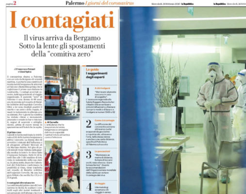 Repubblica: “Il Coronavirus sbarca a Palermo con un volo da Bergamo di venerdì mattina. Sotto la lente gli spostamenti della “comitiva zero”