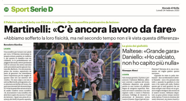 L'edizione odierna del "Giornale di Sicilia" parla della partita di ieri dei rosanero in quel di Licata. La sconfitta fa...