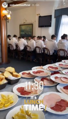 In alto la storia inserita su Instagram dal profilo ufficiale del Palermo che raffigura i ragazzi di mister Pergolizzi durante...