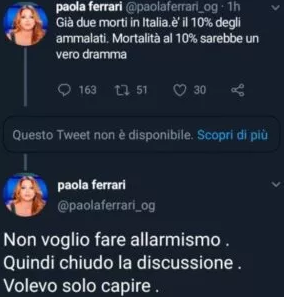 Gaffe della giornalista Paola Ferrari che, attraverso il proprio profilo Twitter, si è detta allarmata dai numeri riguardanti il Coronavirus in Italia: “Già...