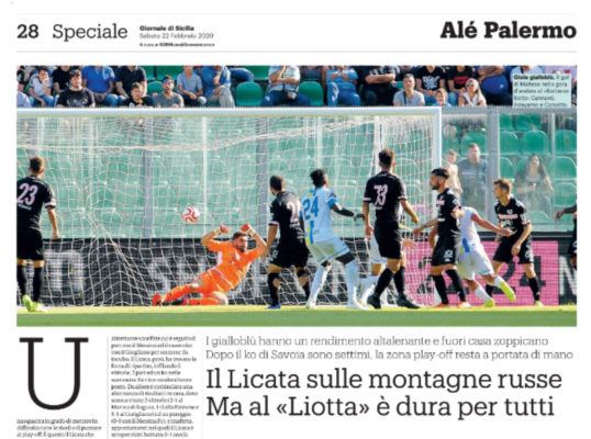 Gds: “Il Licata sulle montagne russe Ma al «Liotta» è dura per tutti”