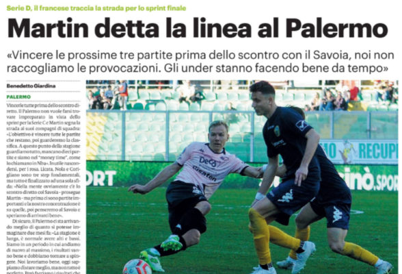 L'edizione odierna del "Giornale di Sicilia" riporta le dichiarazioni di Malaury Martin, centrocampista del Palermo: «L'obiettivo è vincere tutte le partite...