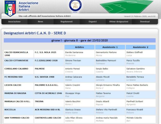 Sono state diffuse le designazioni arbitrali per la 25a giornata del girone I di Serie D. Licata-Palermo è stata affidata...