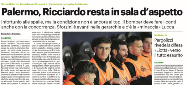 L'edizione odierna del "Giornale di Sicilia" si sofferma sul reparto offensivo del Palermo. Ricciardo vuole riprendersi il posto, ma anche...