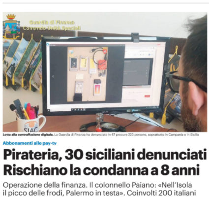 Gazzetta dello Sport: “Lotta ai pirati: c’è una svolta. Ora sono colpiti anche i clienti”