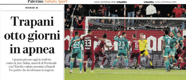 L'edizione odierna de "La Repubblica" analizza il momento del Trapani. Se la formazione granata vuole ancora mantenere pulsante la speranza,...
