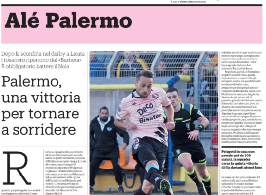L'edizione odierna del "Giornale di Sicilia" si sofferma sulla sfida Palermo-Nola. La squadra di Pergolizzi ha bisogno dei tre punti per...