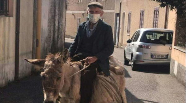 E' diventata virale la foto di un 81enne sardo in sella alla sua asina con tanto di mascherina. Ai tempi...