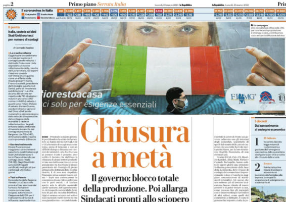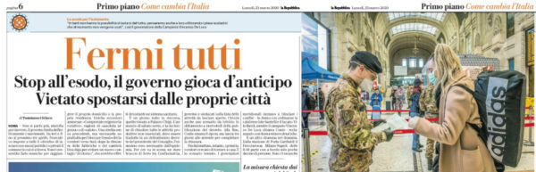 L'edizione odierna de "La Repubblica" si sofferma sulle ultime disposizioni per contrastare l'emergenza Coronavirus. Non si parte più, stavolta per davvero....