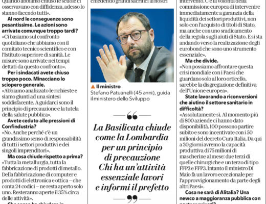 L'edizione odierna de "La Repubblica" riporta le dichiarazioni di Stefano Patuanelli, ministro dello Sviluppo economico. Ogni settimana una nuova stretta....