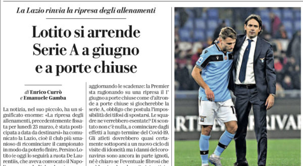 L'edizione odierna de "La Repubblica" si sofferma sul dietrofront di Lotito. Inizialmente, la Lazio aveva comunicato l'intenzione di riprendere gli...