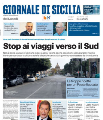 Nella sua prima pagina, l'edizione odierna del "Giornale di Sicilia" si sofferma sullo stop ai viaggi verso il Sud e...