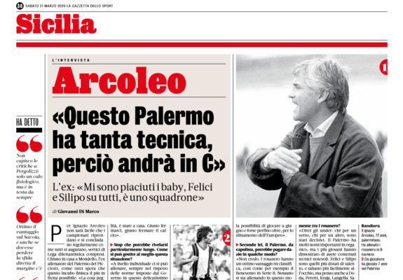 Ignazio Arcoleo, storico allenatore del Palermo dei Picciotti ha voluto dire la sua sui rosanero guidati da Pergolizzi. Di seguito...