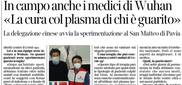 Il "Corriere della Sera" parla della terapia studiata al Policlinico San Matteo di Pavia utile a combattere il Coronavirus. Ieri...