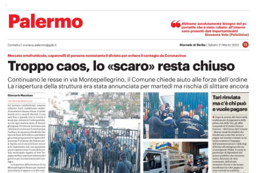 Gds: “Emergenza Coronavirus. Palermo, troppo caos, lo «scaro» resta chiuso”
