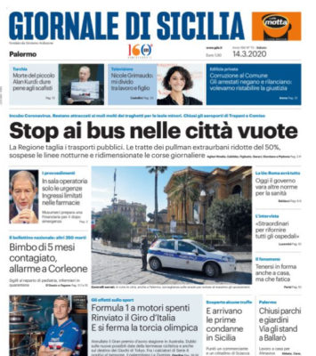 La prima pagina dell'edizione odierna del "Giornale di Sicilia", parla dell'ordinanza del presidente della Regione Nello Musumeci.