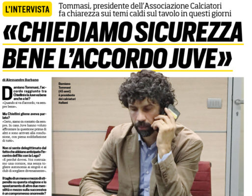 L'edizione odierna del "Corriere dello Sport" riporta le dichiarazioni di Damiano Tommasi, presidente dell'Associazione Calciatori: «Se anche si tornerà a giocare...