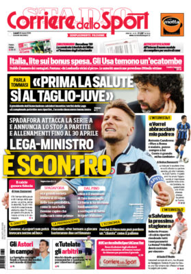 L'edizione odierna del "Corriere dello Sport" si sofferma sullo scontro Lega Serie A - Governo. Il Ministro Spadafora ha cancellato la...
