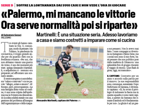 L'edizione odierna del "Corriere dello Sport" riporta le dichiarazioni di Alessandro Martinelli, centrocampista del Palermo, rilasciate ai microfoni del sito...