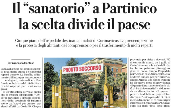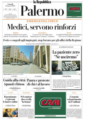 Nella sua prima pagina, l'edizione odierna de "La Repubblica - Palermo" dedica ampio spazio all'emergenza Coronavirus.