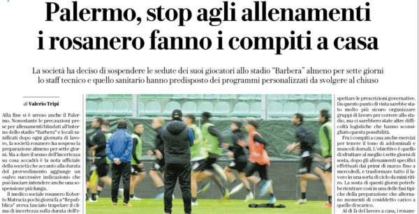 L'edizione odierna de "La Repubblica" si sofferma sullo stop degli allenamenti del Palermo. Fino all'ultimo, staff medico e tecnico hanno...