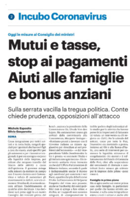 L'edizione odierna del "Giornale di Sicilia" si sofferma sulle misure per arginare l'emergenza Coronavirus. Cassa integrazione per tutti i settori e...
