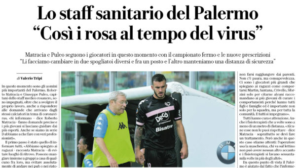 “Lo staff sanitario del Palermo «Così i rosa al tempo del virus».”