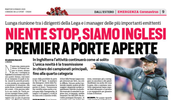 L'emergenza Coronavirus spaventa tutta Europa, tranne gli inglesi, che non hanno nessuna intenzione di far disputare le partite di Premier...