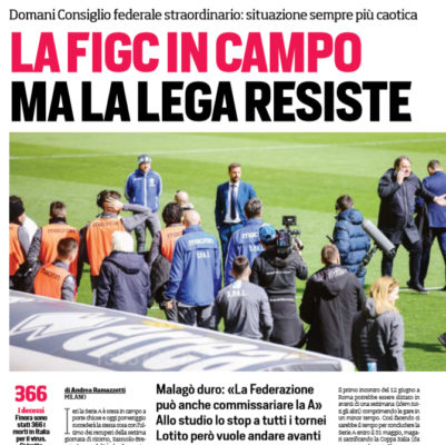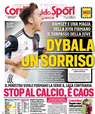 Continua l'emergenza Coronavirus in Italia, l'epidemia ha mandato nel caos la Serie A. L'edizione odierna del "Corriere dello Sport" ha...