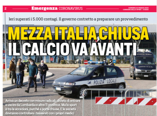 L'edizione odierna de "Il Corriere dello Sport" analizza quella che è la situazione che sta attraversando in questo momento l'Italia...