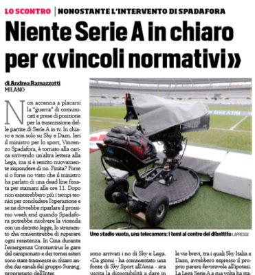 Corriere dello Sport: “Niente Serie A in chiaro per «vincoli normativi»”