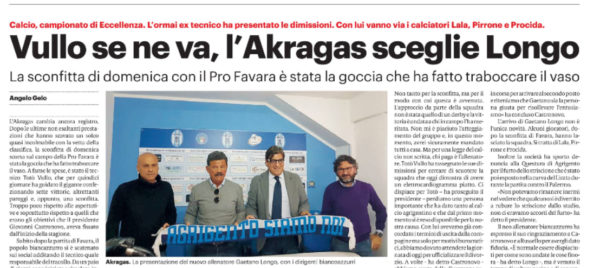 Gds: “Vullo se ne va, l’Akragas sceglie Longo”