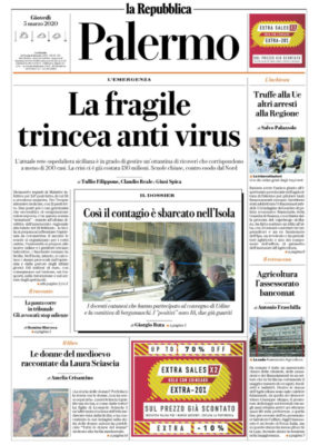 In Italia scattano le misure per cercare di non far propagare il Coronavirus. La prima pagina dell'edizione odierna di Repubblica...