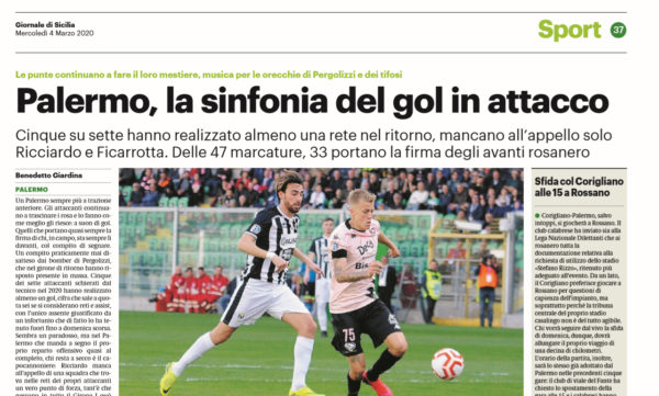 L'edizione odierna del "Giornale di Sicilia" esalta le prestazioni offensive del Palermo. Cinque dei sette attaccanti schierati dal tecnico nel...