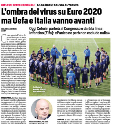 L'edizione odierna del "Corriere dello Sport" si sofferma sulle ombre attorno a Euro 2020, a causa dell'allarme Coronavirus. Mancano cento...