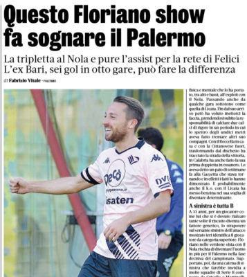 L'edizione odierna della "Gazzetta dello Sport" esalta le prestazioni di Roberto Floriano, attaccante del Palermo. Ha dovuto attendere dieci per...