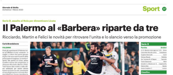 L'edizione odierna del "Giornale di Sicilia" si sofferma sulla sfida Palermo-Nola. I campani vivono un momento d'oro e già all'andata...