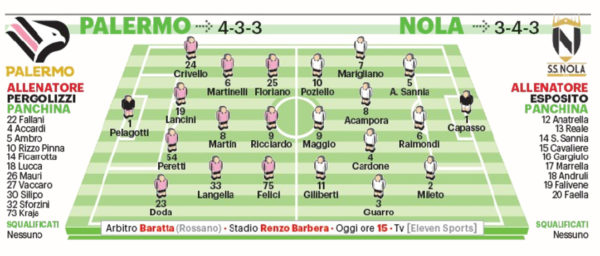 L'edizione odierna del "Giornale di Sicilia" riporta le probabili formazioni di Palermo-Nola. In foto, i ventidue che scenderanno in campo...