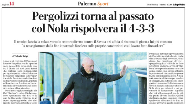 L'edizione odierna de "La Repubblica" si sofferma sulle possibili scelte di Pergolizzi in vista della sfida col Nola. «Le certezze sono...