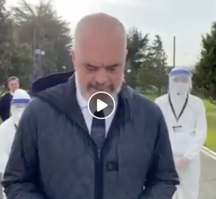 Il premier albanese Edi Rama salutando all'aeroporto di Tirana un team di 30 medici e infermieri albanesi in partenza per...