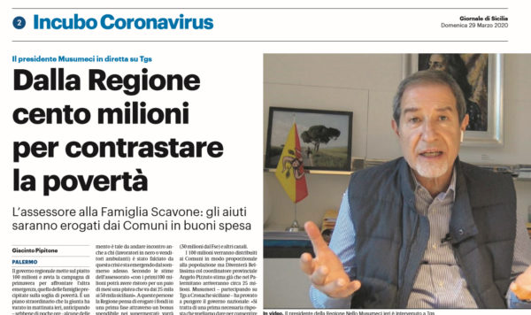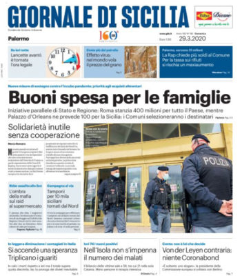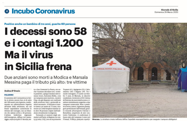 Gds: “Incubo Coronavirus. Positivo anche un bambino di tre anni, guarite 60 persone. I decessi sono 58 e i contagi 1.200. Ma il virus in Sicilia frena”