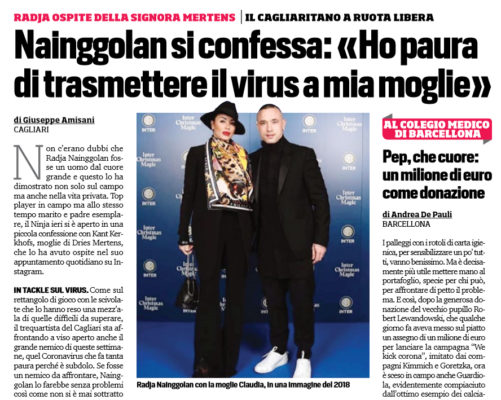 L'edizione odierna del "Corriere dello Sport" si sofferma sulla paura di Radja Nainggolan, centrocampista del Cagliari. «Questo virus - ha spiegato...