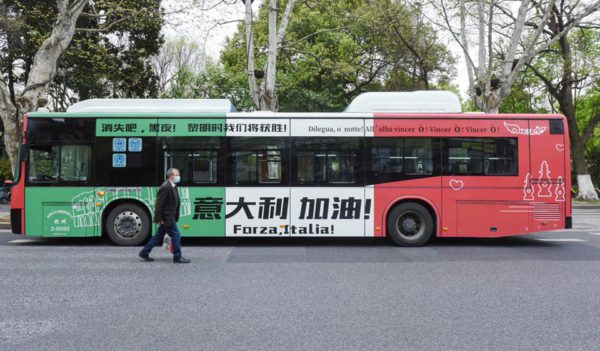 Come riportato da "Il Corriere della Sera" un autobus tricolore, con la scritta “Forza, Italia!” in cinese e in italiano...