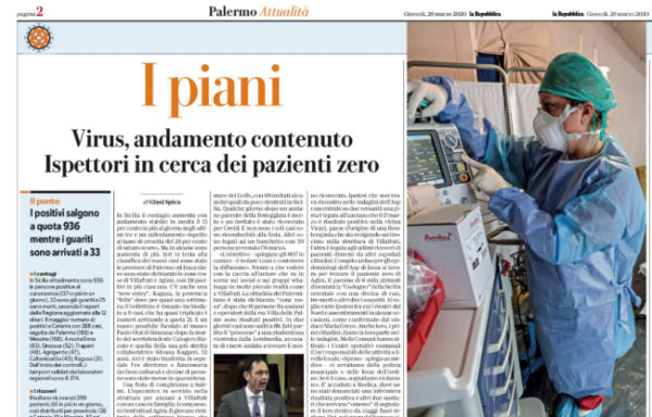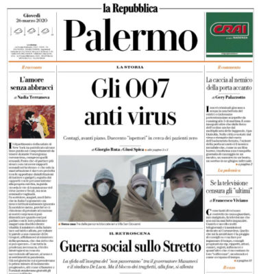 L'edizione odierna de "La Repubblica" si sofferma sull'emergenza Coronavirus in Sicilia. Nelle città svuotate dal virus e riempite dal vuoto dell’isolamento...